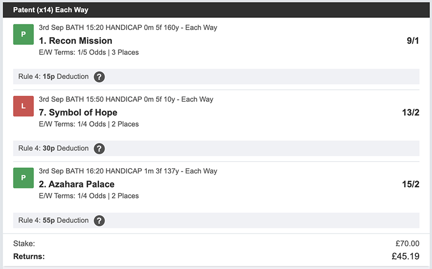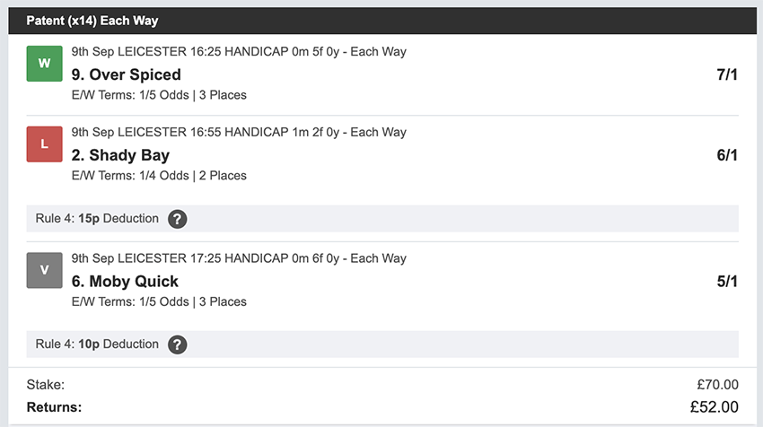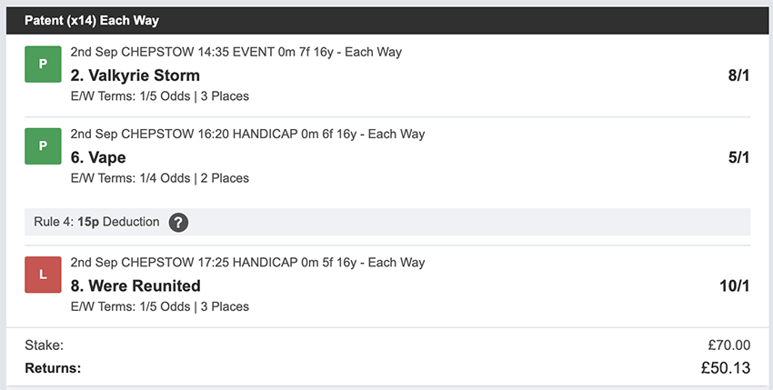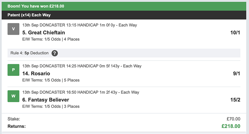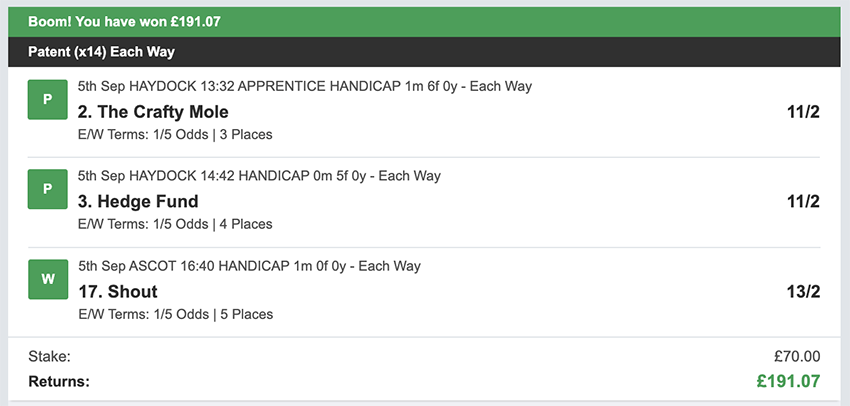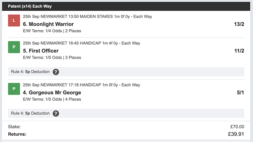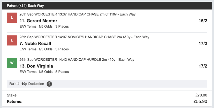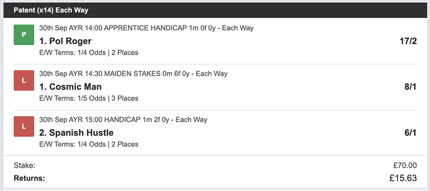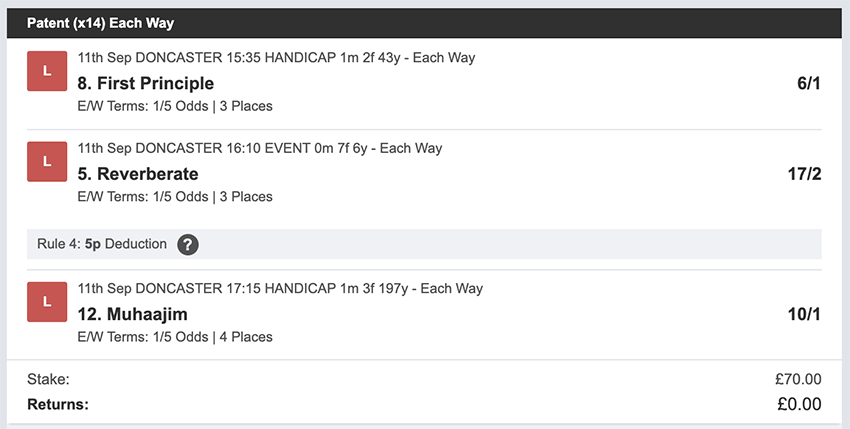 Profit/Loss +£28.75 21st September No Bets on Sundays 22nd September