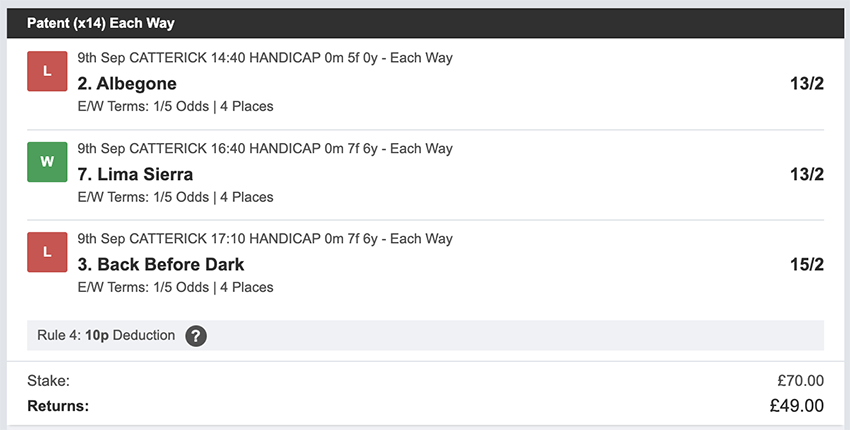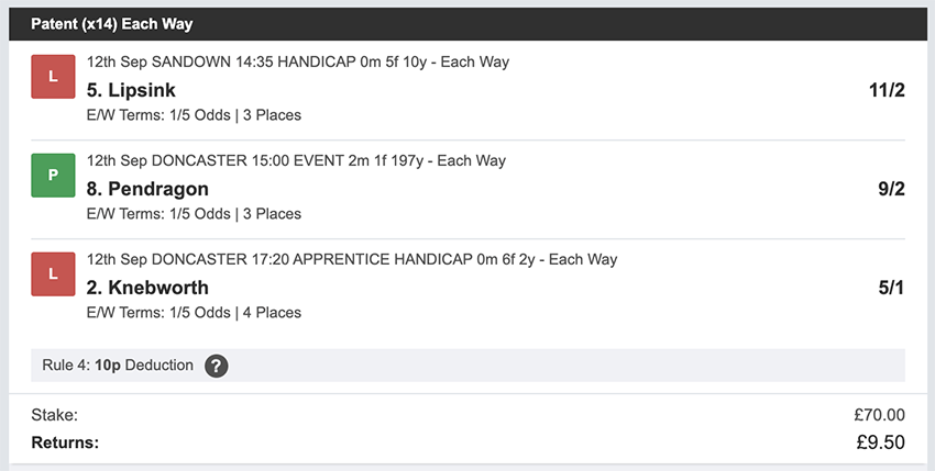 Profit/Loss -£18.00 10th September No Racing - Strike Action 11th September