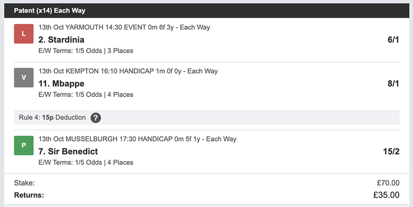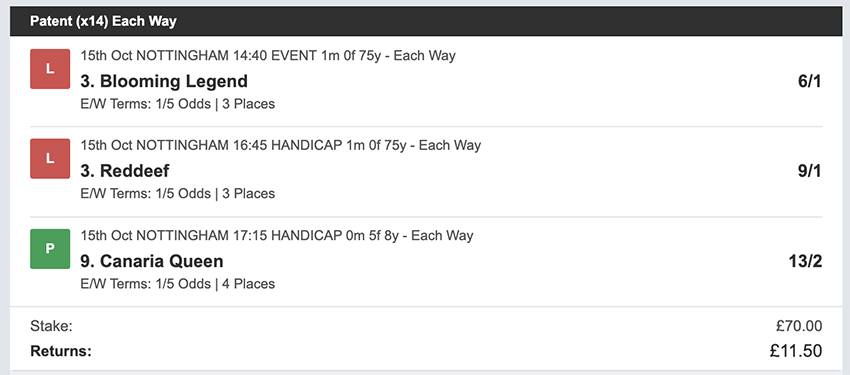 Profit/Loss +£111.38 5th October No Bets on Sundays 6th October
