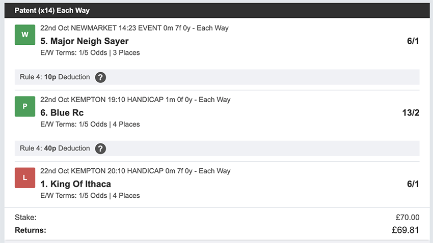 Profit/Loss +£806.40 12th October No Bets on Sundays 13th October