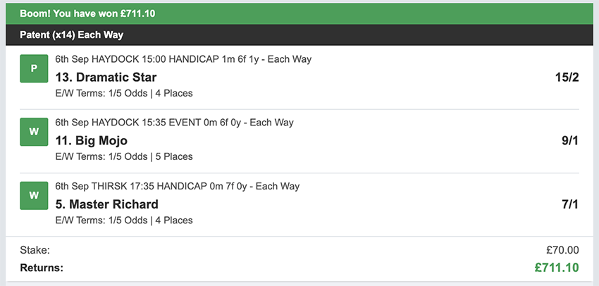 Profit/Loss +£641.10 7th September No Bets on Sundays 8th September