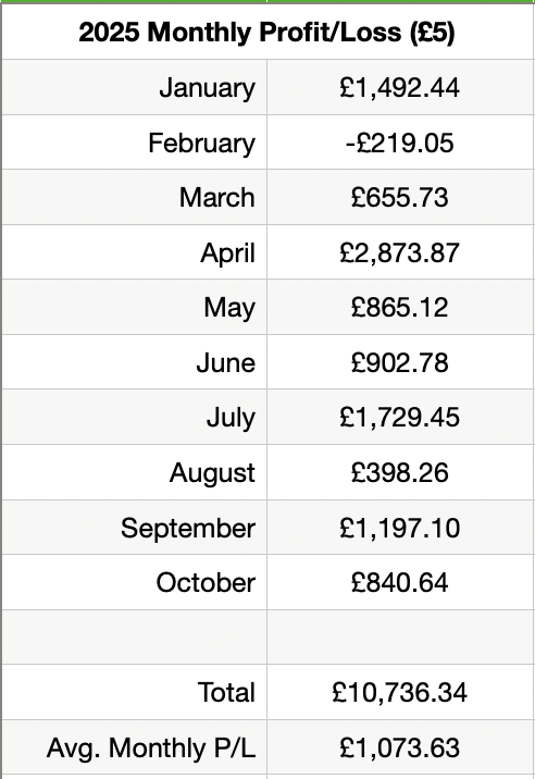 Profit/Loss +£25.25 31st October